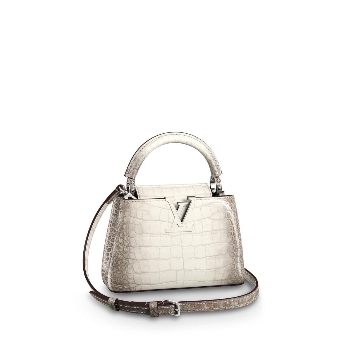 Louis Vuitton Capucines Mini handbag crafted from precious crocodilian leather in white/beige